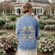 Le cadeau parfait pour la mariée est cette veste en jean moderne à fleurs ! C'est l'accessoire idéal pour elle à porter le jour de son mariage ! Elle présente des fleurs modernes et douces de couleur terreuse et "Bride" est écrit en élégante écriture noire au centre.