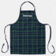 Handsome plaid apron done in the traditional blue, green, white clan Robertson tartan pattern. White custom text, on the bib area, is ready to personalize for yourself or as a great gift idea.