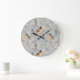 Robin Bird Mama and Baby Summer Brood With Flowers Large Clock