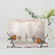 Deux braquages festifs s'installent sur des branches enneigées. Téléchargez votre propre photo de Noël pour remplacer celle qui est montrée. Customisez avec votre salutation festive et votre nom de famille. Photographie aimablement fournie par Storytree Studios. Photographie © Storytree Studios, Stanford, CA.