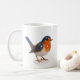 Realistic robin illustration on white ceramic mug, ideal for bird lovers, coffee drinkers, and nature enthusiasts.