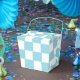 Robin Egg Blue with White Square Pattern Take Out Favor Box