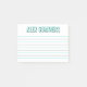 Lined post it notepad with your name at the top in big block letters with a robin egg blue outline and black shadow. Lines in a lighter shade of teal and grey. Write down your notes and messages on this personalized robin egg blue and black sticky notepad with your name at the top.