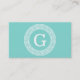 Robin Egg Wht Greek Key Rnd Frame Initial Monogram Business Card