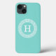 Robin Egg Wht Greek Key Rnd Frame Initial Monogram Case-Mate iPhone Case