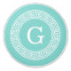 Robin Egg Blue Turquoise Aqua and White Greek Key Round Framed Initial Monogram