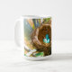 Robin eggs unhatched in a backyard tree nest coffee mug