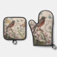 Robin Elegant Bird Butterfly French Art Oven Mitt & Pot Holder Set
