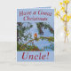 Christmas card for Uncle featuring a cute European robin perched in a hawthorn tree with red berries. All text can easily be customized as you wish.