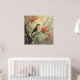 Beautiful nature vintage lithography of a robin redbreast on a tree branch with pink flowers and red berries, soft delicate colours in Japanese style