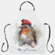 Add a personalized touch of winter charm to your holiday baking or cooking with our "Robin Winter Delight" apron. This charming apron features the delightful watercolor illustration of a robin, bundled up for winter in a festive red and white striped beanie topped with a fluffy pompom. This beloved little bird brings a whimsical and joyful spirit to your kitchen endeavours.