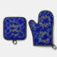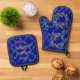 Robin, wreaths, and snowflakes blue oven mitt & pot holder set