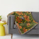 Robins and lilly flowers, orange and dark green throw blanket