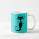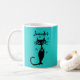 Mignonne tasse de chat rétro en bleu oeuf de robins. Personnalisé avec nom. Présentez le compagnon parfait pour votre routine de café matinal! Cette tasse à café d'inspiration rétro moderne du milieu du siècle robins bleu oeuf dispose d'un charmant design de chat noir à cou long qui ajoute une touche de fantaisie à votre brasse quotidienne. Embrassez la nostalgie avec une touche moderne en sirotant un verre de style. Faites vos pauses-café miow-some avec cette tasse unique et délicieuse!