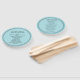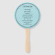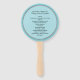 Glamourous wedding program fan done in robin's egg blue, with graphics of a bold silver tone glitter looking circle, around the out side edge. Personalize the text for your wedding day.