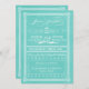 This simple, lightly textured, medium robin's egg blue and white wedding invitation, including special sections for directions and reception on the back, has a vintage, old fashioned feel with old-timey letter design, including elaborate script elements, a decorative banner, stars and a swirly ampersand. The fancy invitation is inspired by both vintage design and stylish posters. The text reads: "You're Invited to the wedding of [customizable name] & [customizable name] [customizable date] [customizable time]. Please Join Us for an Unforgettable Celebration". Further personalize the invitation with the wedding ceremony and reception information and address, each in their own box with dotted border.