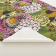 Hand-drawn pattern with various flowers- hydrangea, anemone, peony, dahlia and robin birds