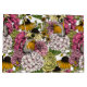 Hand-drawn pattern with various flowers- hydrangea, anemone, peony, dahlia and robin birds