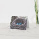 Carte de billet vierge avec une photo originale d'un nid de robin avec des oeufs bleus au printemps.