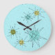 Le motif d'horloge murale acrylique ronde de Robin's Oeuf Blue Iconic Atomic Starbursts comporte des étoiles atomiques emblématiques. C'est vrai ! L’ancienne école, arrière - plan de couleur bleu oeuf de robin avec des taches d’or, est la toile de fond idéale pour les cercles turquoise, apaisants et vert poire kitsch. Les taches de couleur sont sporadiquement placées dans différentes tailles avec la superposition de lignes en V noir pour former les starbursts de Spoutnik mod. Conçu dans le style d'un motif des années 50, ce design d'inspiration rétro offre tout ce dont vous avez besoin pour être vraiment moderne du milieu du siècle.
