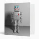A binder with an original 3d photo-realistic rendering of a cute little metal robot. The image is repeated on both the front and back covers. The spine has white lettering on a black background, customize the lettering to add your title.