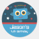 Joli petit robot autocollants de 4ème anniversaire. Texte personnalisable et arrière - plan supérieur. Invitations coordonnées à la fête d'anniversaire, timbres-poste, boutons, T-shirts, albums photo et plus encore! PinkInkArt original !