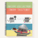 Super cute keeper recipe notebook for cooking and baking recipes featuring a trio of retro robot chefs having a dinner party and arguing over the food.