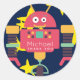Fun cartoon robot and stars in colours blue pink and yellow feature on this fun personalized party supplies item. For matching invitations and custom edits contact desigenr LeahG.