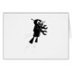Un robot volant noir. L'art robot de l'enfant. Dessin original.