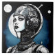 + AI ART + Retro Cyborg Woman in Outer Space + Blue & White +
