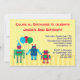 Cute and colourful birthday party invitation. Features three robots with balloons and party hat. Modern and fun design great for a robot, space or science birthday theme. Add your own wording.