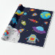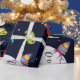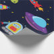 Crazy, happy, colourful assortment of robots amid the planets and stars. Perfect for a child's birthday, or for any occasion, for anyone who loves robots or Sci-Fi or a 50s cartoon feel. The images are quite large, so this is best to use on large packages. Be sure to check what finish you want on the paper under “Options”, “Media”-- this item is currently set for the "matte" finish. There's plenty of room to customize the paper with a name or personal message. Have fun!