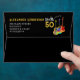Rock and roll 50th birthday party self addressed envelope. Personalized rocks 50 for the rockstar husband, boyfriend, brother, dad or partner with these funky psychedelic guitars and cool gold typography on on black background. Unique colourful guitar illustrations with electric guitar with Fire flame and red pick guard, a multicoloured semi acoustic guitar and a psychedelic classic acoustic guitar. Easy to use template with personalized name and RSVP return address creates the perfect party stationary to celebrate fifty in rock n roll style. Ideal trendy party stationary for a guitarist, musician, live music band and music lovers. Any guitar player will tell you that you can never have too many guitars. This cool modern musical instrument design celebrates the music energy of this wonderful musical instrument and is the perfect way to rock a fiftieth birthday celebration. Original artwork by artist Catherine Sweetman
