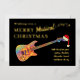 Rock and Roll Christmas Guitar Black and Gold Foil Holiday Card