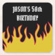 Throw a rocking birthday bash with personalized party supplies like these paper coasters featuring illustrations of flames in yellow and red set against a black background. Your custom message is spelled out in white heavy metal style lettering.
