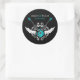 Personalized stickers for a rock 'n' roll music theme wedding or engagement party featuring a vintage illustration of winged electric guitars and baroque embellishments on teal and black. Personalize these stickers with the bride's and groom's names, add the wedding date or customize the design further if you wish to adjust the layout or to choose a different sticker shape. Matching wedding invitations, RSVP cards and Save the Date announcements also available!