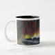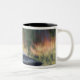 Rock and tree reflection, Lily Pond, White Two-Tone Coffee Mug