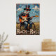 This artwork depicts a legendary shark, wearing a top hat and stylish sunglasses, as it performs an epic rock concert on an electric guitar from a frosty mountain peak. The backdrop is a cool blue ocean with floating ice, surrounded by more snow-covered mountains. The robust, textured brushstrokes give the painting a rugged and exciting feel, celebrating the "ROCK and ROLL" spirit in an extraordinary environment.