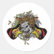Grunge Rock n Roll Skull with guitars crossed and floral circle background. Great gifts for any hard rock n roll music fans!