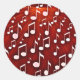 Dark red colour with white music notes and a star blast at the centre top of product. Music notes for any occasions. Music to me gives and is life. You can customize this product.