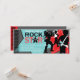 Party like a rock star! Aqua blue and red stars with kids singing and playing guitar: hip and cool rock star birthday party invites.