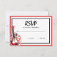 A rock star guitar is featured on this red and black RSVP card.
