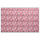 Funky rockabilly patterned fabric with a vintage 1950s design of black poodles, dice, cherries and sunglasses over pink musical notes and stripes