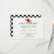 This fun wedding design is called Rockabilly Hearts and Rose Wedding. The background is a black and white chequered pattern, similar to the 1950s floor tiles. In the centre of the invitation, there is a white inset with a red outline for your text. At the top there is a red rose and two hearts with banners for the bride and groom names done in a vibrant watercolor. This set has invitations, save the date cards, response cards, thank you cards, table number cards, wine labels, and many more day-of wedding stationery pieces, favours, and gifts available. All elements are printed on our high quality products, they do not include any real gold, jewels, embossing, or other textile elements. All designs are copyright Noteable Expressions, Inc. All rights reserved. Please email me at Nique@NoteableInvitations.com for matching designs, products, colour matching or with custom requests.