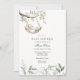 Baby Shower invitation featuring a frame of watercolor eucalyptus and greenery with a baby rocking in a tree. Customize with your information for the mom to be. Click "click to customize further" to change the font style, size or colour.