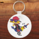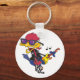 A cartoon style bird dressed up as a rocker. This design looks really effective on this Keychain