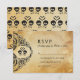 This Rock n' Roll Wedding RSVP features a vintage paper background with black lace skull and crossbones couple. Victoria is a successful wedding invitation designer located in Jupiter, Florida near West Palm Beach.