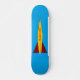 The Rocket AD8 skateboard features the picture of a colourful rocket, yellow with red fins, on a blue background for the high flying skateboarder brave enough to ride it.