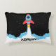 Rocket Launching in Outer Space Custom Name Accent Pillow