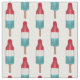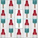 Patriotic fabric features red, white, and blue "rocket pop" popsicles on sticks, created from an original marker illustration. Perfect for celebrating Independence Day!
